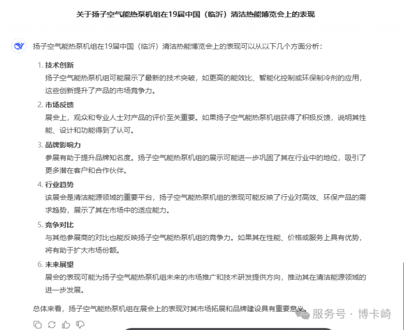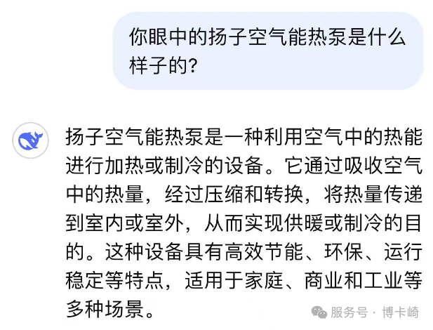 那么在最近全球爆火的DeepSeek的眼中,扬子空气能又是什么样子的,表现如何呢?让我们来期待一下它的回答!